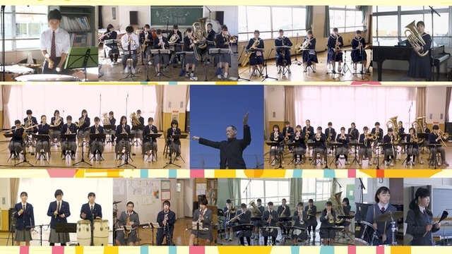そこで、コロナ禍における演奏体験の創出と、コロナ禍でも安全に、少しでも“演奏”を実現できることを目的に、令和元年度にご参加された一部の学校生徒にご参加いただき、吹奏楽の名曲「宝島」のリモート演奏動画を制作しました。