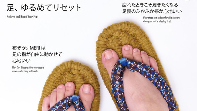 “MERI”とは北国のおばあちゃんの知恵から生まれた布ぞうりです。青森県の布ぞうり職人たちと縁あって出会い、この出会いをきっかけにして開発を重ね、履き心地が良くデザイン性も高いルームシューズ“MERI”が誕生しました。