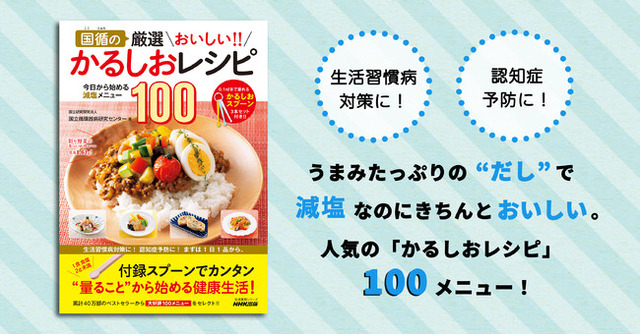 1食あたり食塩相当量2g未満、おいしさを引き出す決め手は、うまみたっぷりの“だし”。国立循環器病研究センター(国循)が京料理の手法を取り入れて独自開発した減塩メニュー「かるしお」(=軽塩)は、「しっかり味があっておいしい」「退院しても食べたい!」と患者さんが口をそろえるほど。この人気の病院食を家庭で再現できる、としてベストセラーとなったレシピ集が、装いも新たに再登場します。