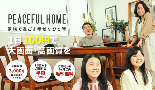 2021年4月8日(木)のリリース当初から様々な方にご利用頂いております、大画面・高画質テレビ「Smart TV」のサブスクリプションサービス「PEACEFUL HOME by Smart TV」ですが、サービス品質の向上とより多くのお客様へご提供させていただくために、2021年6月1日(火)より利用料金を大幅値下げ致します。