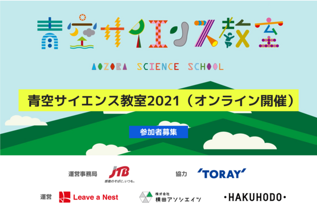 東レ株式会社(住所:東京都中央区 代表取締役社長:日覺 昭廣、以下、「東レ」)と株式会社JTB(住所:東京都品川区 代表取締役 社長執行役員:山北 栄二郎、以下、「JTB」)、株式会社横田アソシエイツ(住所:東京都中央区 代表取締役:横田 浩一、以下、「横田アソシエイツ」)、株式会社リバネス(住所:東京都新宿区 代表取締役グループCEO:丸 幸弘、以下、「リバネス」)、株式会社 博報堂(住所:東京都港区 代表取締役社長:水島 正幸、以下、「博報堂」)は、小学校3~5年生を対象とした体験型教室「青空サイエンス教室2021(オンライン開催)」を2021年8月9日(月・祝)にオンラインにて開催します。本教室への参加者の募集は2021年6月1日(火)13:00から開始します。