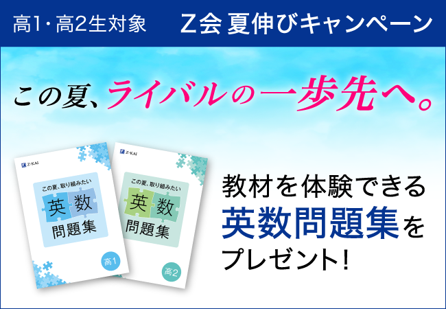 この夏、難関大合格をめざして本気で実力を伸ばすために、Z会の通信教育・高校生向け資料をご請求ください!