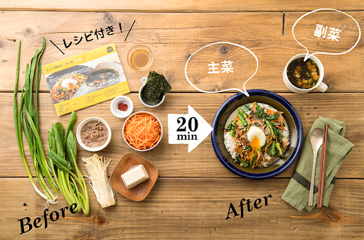 必要量の食材とレシピがセットになった、主菜と副菜の2品が20分で作れるミールキット。 2013年7月より販売を開始しました。
