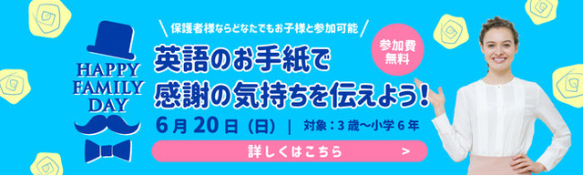 「英語のお手紙で感謝の気持ちを伝えよう!HAPPY FAMILY DAYイベント」申し込み専用ページまたは電話にて受け付け中
