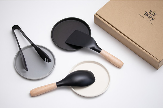 ツーリーナイロンスプーン、ツーリーナイロンターナー、ツーリーナイロントング、ツールレスト(Cream・Black・Gray各1枚)
