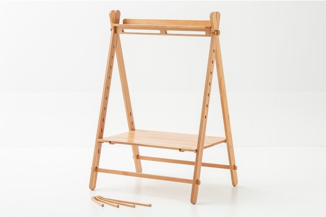 A&D/Wブランドの第一弾【七輪囲炉裏】と同様に、岩手県指定伝統工芸品である「南部箪笥」の製作によって培われた「指物技術」で接合し、金具類、ボルト、ネジ、釘などは一切使用せず、木製部材のみで、工具も使わず、組み上げできます。この技術は難易度が高く、熟練の職人の手によって一点ずつ時間と手間をかけて製作します。アウトドア用家具としてハードな使用にも耐えうる設計をすることで、組立&分解が可能となります。組立後に持ち上げたり移動してもバラバラにならずしっかり部材同⼠が接合された状態になります。