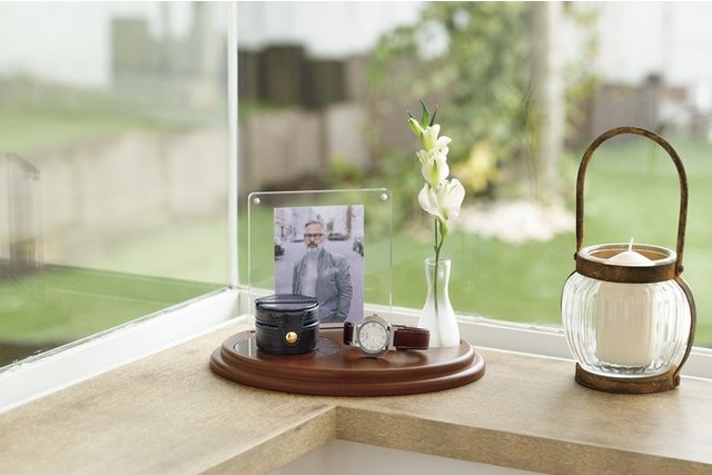 「Soul Stage」は、自宅のインテリアに馴染み、狭いスペースでさりげなく大切な人を偲ぶことができます。今回販売する「Soul Stage F」は、コンパクトサイズで優しいオーバルラインで仕上げた木製ステージとクリアタイプのフォトフレームと花立が特長です。