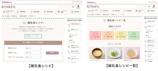 離乳期は赤ちゃんが母乳や乳児用ミルク等を飲むことから、食べ物をかみつぶして飲み込むことへ発達し「食べる」ことの基礎をつくる大切な時期です。同サイトでは、「簡単でわかりやすい離乳食レシピ」を紹介しています。離乳食レシピは、月齢・分類・ベビーフードの条件を組み合わせて検索する方法や、離乳食レシピ一覧で月齢から探す方法があります。更には、毎日更新する「今日のおすすめ離乳食」に加え、「離乳食の食材チェックリスト」や「動画でわかる 離乳食のきほん」など、ご家庭で手軽に離乳食を学べるコンテンツも用意しています。