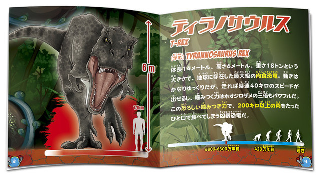 ●ブックレットでは、同梱された恐竜の体長や特長が詳しく解説されています。