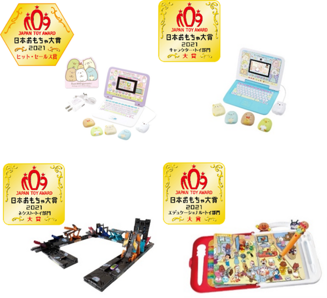 『マウスできせかえ!すみっコぐらしパソコンプラス』が前年度ヒット・セールス賞を受賞しました。また、キャラクター・トイ部門では、『マウスできせかえ!すみっコぐらしパソコンプレミアム』、ネクスト・トイ部門では、『チェインレンサー スターターセットDX』、エデュケーショナル・トイ部門では、『アンパンマン にほんご えいご 二語文も!あそぼう!しゃべろう!ことばずかんPremium』がそれぞれ大賞を受賞しました。