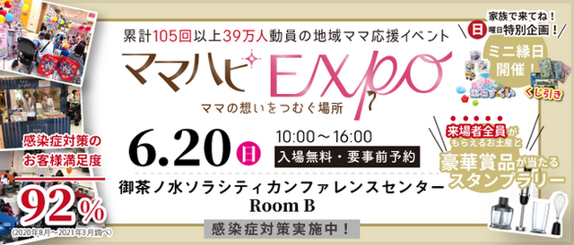 2021年6月20日(日) 10:00~16:00 「ママハピEXPO@御茶ノ水ソラシティカンファレンスセンター」
