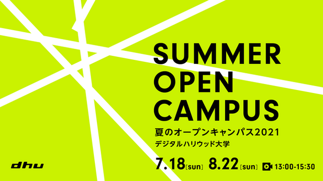 文部科学省認可の株式会社立の大学としてデジタルコミュニケーション学部(4年制大学)とデジタルコンテンツ研究科(専門職大学院)を設置しているデジタルハリウッド大学(所在地 東京・御茶ノ水、学長 杉山知之/DHU)は、7月18日と8月22日の2日間、「夏のオープンキャンパス2021」を開催します。