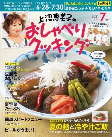 この号は、6月28日~7月30日までの番組放送レシピを、詳しい手順写真つきで掲載。旬の「夏野菜たっぷり」おかずや、食欲をそそる「ちょい辛・ピリ辛」おかず、おうち飲みにうれしい「ビールがうまい!」料理などを紹介します。