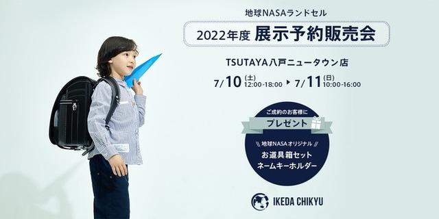 TSUTAYA 八戸ニュータウン店(青森県八戸市)では、昨年より地球NASAランドセルの定番商品を一部コーナー展開でお取扱いただいております。昨年夏に 店内にて地球NASAランドセルのフルラインナップで予約販売会を開催したところ大変ご好評いただき、今年も7/10(土)・7/11(日)の2日間限定で「地球NASAランドセル展示予約販売会」を開催する運びとなりました。この2日間に限っては2022年ご入学用の地球NASAランドセル約50点が勢揃いいたします。オリジナルランドセルのほか、女の子に人気のムーミンランドセルなども含めて幅広くご案内させていただきます。予約販売会には弊社スタッフが常駐し、細部にこだわった1点1点をご説明させていただきます。この機会にぜひご家族でご来店いただき、お子さまにお似合いのランドセルを実際に背負って、背負い心地や機能性、色などさまざまな角度からご検討ください。