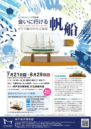 神戸海洋博物館ボトルシップ愛好会は、1987年に神戸海洋博物館の開館と同時に発足し、海と帆船を愛するメンバ-で趣味としてボトルシップを楽しみつつ神戸海洋博物館と協力しボトルシップの啓蒙活動を行っています。主な活動は、月例会でのボトルシップ製作方法情報の交換、神戸海洋博物館での常設展示および作品展、子供達へのボトルシップ製作教室指導などです。
