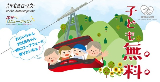 六甲有馬ロープウェーとまやビューライン(摩耶ケーブル・摩耶ロープウェー)は、たくさんの笑顔を咲かせていただくため「子ども無料キャンペーン」で皆さまを応援します。