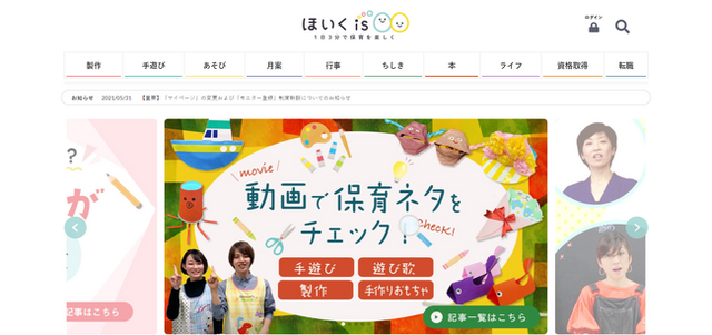 『1日3分で保育を楽しく』をコンセプトに、毎日の保育に役立つ情報をコンパクトに配信する保育士・幼稚園教諭向け総合メディアです。2019年7月のオープン以来、保育に関わる全ての方に向けて365日情報を発信。月間ユーザー数が25万人を超える急成長中の情報サイトです。