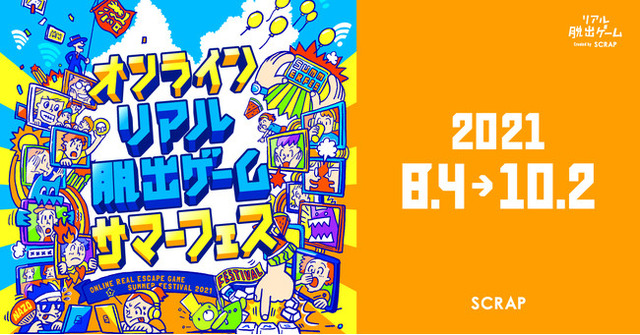 株式会社SCRAP(本社:東京都渋谷区 代表:加藤隆生)は、2021年8月4日(水)より、史上最大級のオンラインフェスティバル「オンラインリアル脱出ゲームサマーフェス」を開催することを決定いたしました。