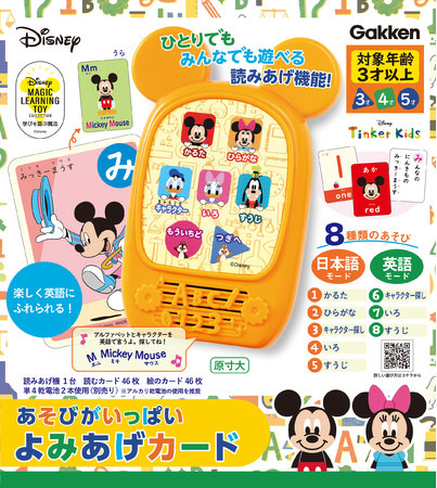 かわいい、「ミッキー」の形をした読みあげ機が、問題を読みあげてくれるので、ひとりも読み手にまわることなく、ひとりでも、みんなでも遊ぶことができ、親子のコミュニケーションツールにもなる知育玩具です。