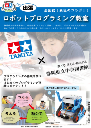公共図書館と、(株)タミヤの協働によるプログラミング教室は全国初の取り組みです。