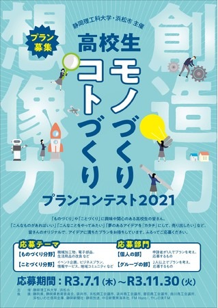 浜松市では、起業・創業支援事業の一環として、次世代の地域経済の担い手育成を目的に、静岡理工科大学との共同主催により「高校生モノづくり・コトづくりプランコンテスト2021」を開催します。本コンテストは、今回が9回目の開催となります。