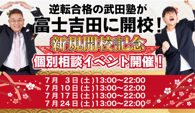 武田塾富士吉田校の開校を記念して、富士吉田校では個別相談イベントを実施いたします。