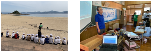 1.地元の小学校と連携し、海ごみ問題についての出前授業と砂浜でのごみ拾いなどの啓蒙活動を実施