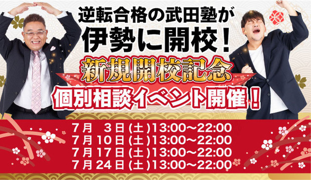 武田塾伊勢校の開校を記念して、伊勢校では個別相談イベントを実施いたします。