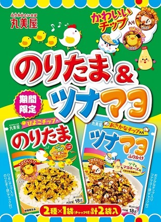 丸美屋食品工業株式会社(本社:東京都杉並区、社長:阿部豊太郎)では、定番商品の「のりたま」と新しい味わいの「ツナマヨ」にチップが入った「期間限定 チップ入り のりたま&ツナマヨ」を2021年8月5日(木)から2022年3月31日(木)までの期間限定で販売いたします。おいしさに加えてふりかける楽しさを提供し、ふりかけ市場の活性化を目指します。