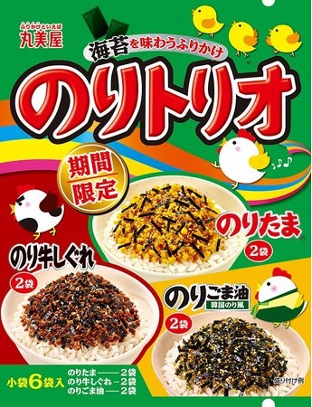 丸美屋食品工業株式会社(本社:東京都杉並区、社長:阿部豊太郎)では、海苔系ふりかけ3種類の食べ比べを楽しめる「期間限定 のりトリオ」を、2021年8月5日(木)から2022年3月31日(木)までの期間限定で販売いたします。
