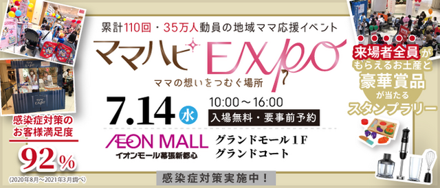 2021年7月14日(水) 10:00~16:00「ママハピEXPO@イオンモール幕張新都心」