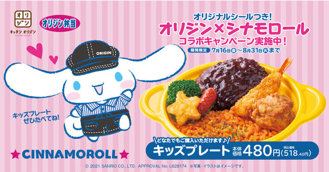 また、同時に「キッズプレート」を買うと、もれなく株式会社サンリオの人気キャラクター「シナモロール」のオリジナルシールがもらえる「オリジン×シナモロール」コラボキャンペーンを実施いたします。