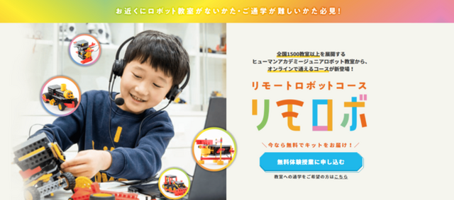教育事業等を展開するヒューマンアカデミー株式会社(本社:東京都新宿区、代表取締役:川上輝之、以下「当社」)はこのほど、当社が展開するヒューマンアカデミージュニアSTEAMスクール ロボット教室より、新たにオンラインで受講できる「リモロボ(リモートロボットコース)」を開講いたしました。リモロボは、「自宅の近くに教室がない」「時間が合わない」など、教室への通学が難しい年長~小学生を対象とした、自宅で受講できるロボット教室です。