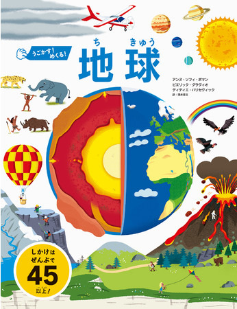 地球の運動・火山・地球の歴史・地形の変化・水の循環・空と天気・気候・天然資源など8つのテーマを、しかけをめくったり動かしたりしながら楽しく学べます。