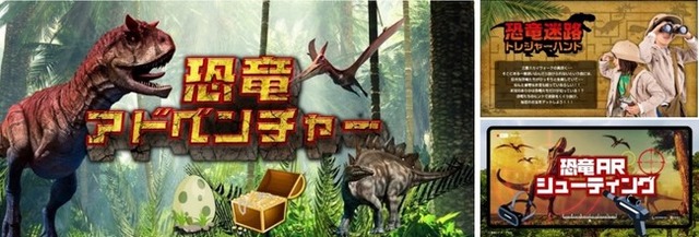 子どもから大人まで楽しめる『恐竜アドベンチャー』は、自然の森の中で巨大な恐竜が潜む迷路を進みながら、隠れた宝箱を探し当てる「恐竜迷路 トレジャーハント」と、ARの世界に入り込み次々と襲ってくる恐竜を倒して進む「恐竜ARシューティング」の異なる2つのアトラクションが楽しみいただけます。どちらのアトラクションもミッションをクリアすると、参加者全員に特製恐竜缶バッジをプレゼントします。