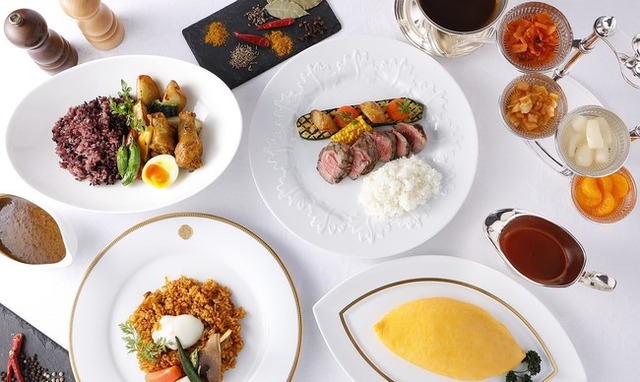 資生堂パーラー特製カレー種をライスと炒め合わせ、ドライカレーライスに仕上げました。+500円でドライカレーライスを卵で包んだオムライスもご提供できます。