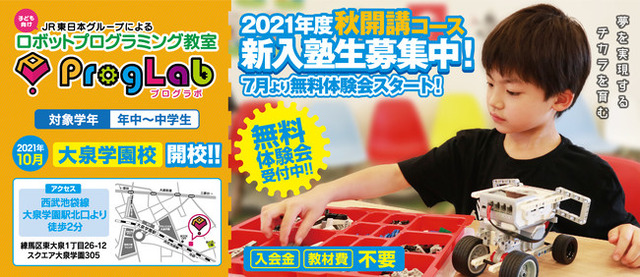 JR東日本グループの株式会社JR中央線コミュニティデザイン(本社:東京都小金井市/代表取締役社長: 高橋 好一)は、子ども向けロボットプログラミング教室「プログラボ」を、JR中央線沿線を中心に展開しています。当社はこれまで開校した7校に加え、小学校の放課後課外教室も運営し、合わせて約800名のお子さまにご利用いただいています。