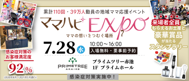2021年7月28日(水) 10:00~16:00「ママハピEXPO@プライムツリー赤池」