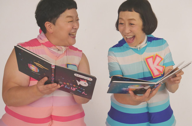 楽しい朗読をしてくれているのは、TVや園などで大活躍の女性ユニット、ケロポンズのおふたり!