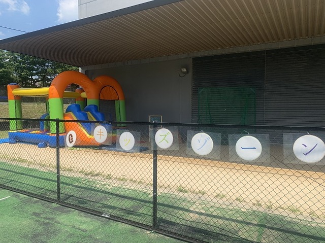 室内練習場横の走路を特別に開放し、エア遊具「ジャビットふわふわ」