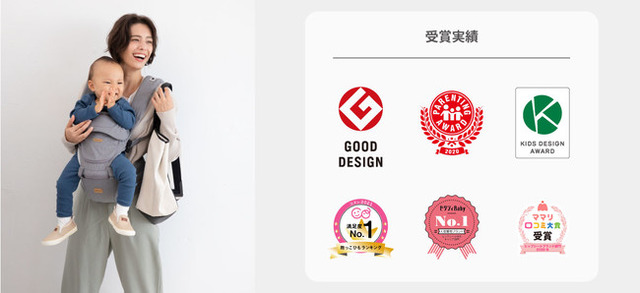 ※BABY&Meは、日本の安全基準(SG基準)認証や人間生活工学認証を取得し、キッズデザイン賞、グッドデザイン賞、ゼクシィBabyクチコミNo.1連続受賞など多くのアワードを受賞している日本のヒップシートキャリア(抱っこひも)メーカーです。人間工学に基づくデザインは、大阪市立大学との共同研究でも実証され、国際股関節異形成協会(IHDI)から公式認定されています。