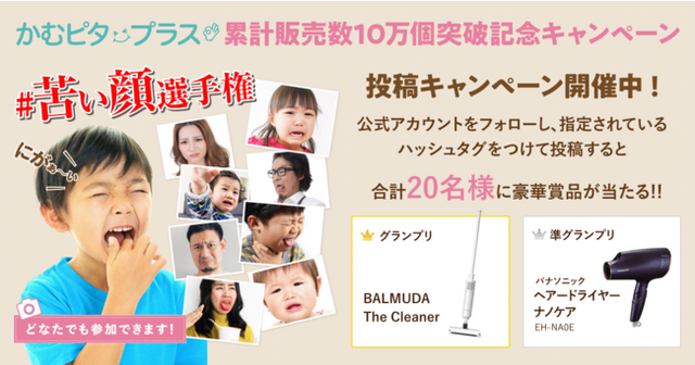 かむピタの累計販売数100,000個突破を記念して豪華賞品が当たる「#苦い顔選手権」というフォトコンテストをinstagram及びTwitterにて2021年8月2日(月)10:00から2021年9月30日(木)23:59まで実施致します。