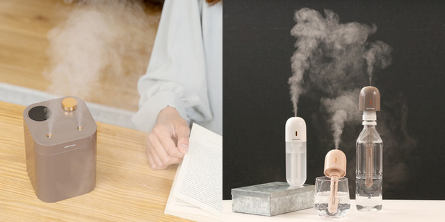 2つのミスト噴出口からミストを出します。最大およそ60ml/hの加湿量があるのであなたの周りをしっかりと潤します。