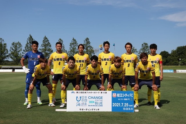 JFL公式戦第18節「松江シティFC vs ソニー仙台FC」が、「CHANGE FOR THE BLUEしまね 海ごみゼロマッチ」として開催され、約300人が会場でのごみ拾いに参加しました。