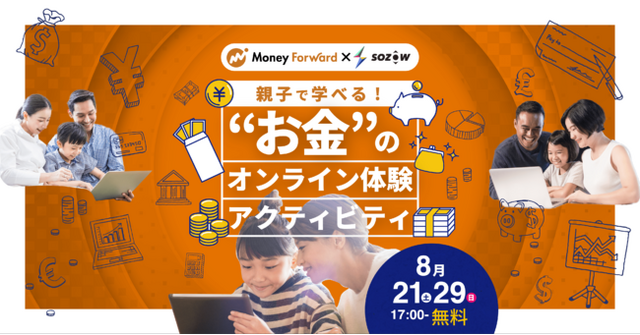 Go Visions株式会社(所在地:東京都品川区、代表取締役:小助川 将)が運営するオンラインの学び場「SOZOW(ソーゾウ)」と、株式会社マネーフォワード(所在地:東京都港区、代表取締役社長CEO: 辻庸介、以下「マネーフォワード」)は、夏休み特別企画として、「Money Forward × SOZOW 親子で学べる“お金”のオンライン体験アクティビティ」イベントを、8月21日(土)・8月29日(日)の2回開催します。