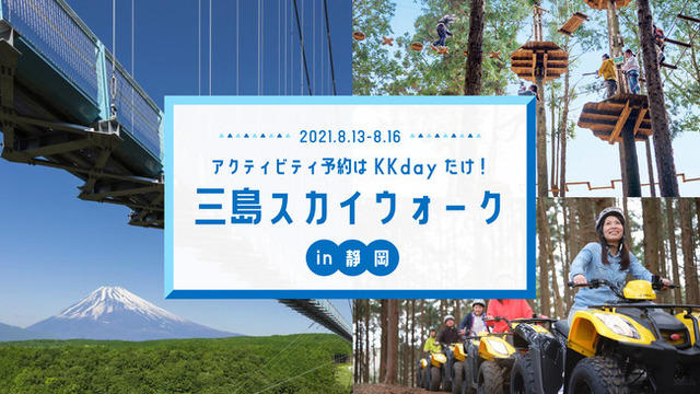 さらに、8/10 (火)より三島スカイウォーク関連商品をご購入いただくと、購入者全員にもれなくKKdayポイントを通常の30倍付与するキャンペーンも実施。
