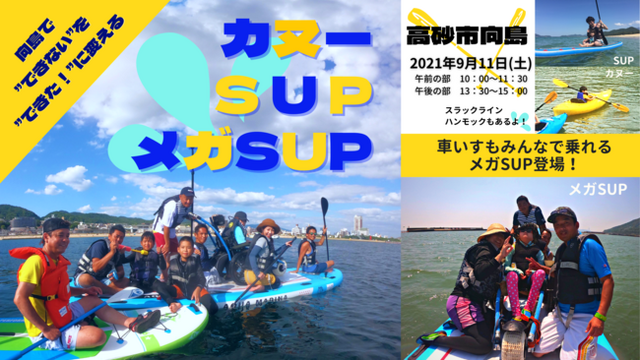 10:00~11:30 SUP体験、カヌー体験、メガSUP体験(車椅子のまま乗れる大きなSUP)、スラックライン、ハンモック