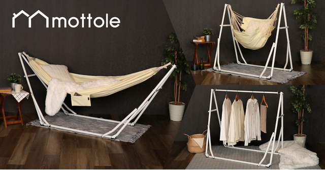 シンプルでありながら、従来の商品にはない機能性アイテムを多数取り揃えるブランド“mottole(モットル)(https://mottole.jp/)”を展開するライフオンプロダクツ株式会社(本社:大阪府大阪市)から、どなたでも楽々組立ができ、暮らしになじむナチュラルカラーの3Wayハンモック【mottole ハンモック】を2021年8月1日より販売開始いたしました。幅広ネットで優しく包まれる快適空間をお楽しみください。