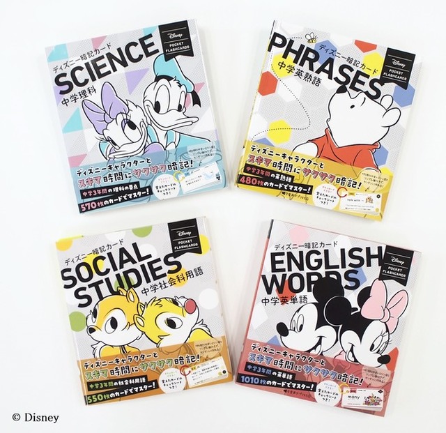部活や宿題など毎日忙しい中学生の皆さん! かわいいディズニーのキャラクターたちといっしょなら、休み時間や通学時間、ちょっとしたスキマ時間の勉強が楽しくなること間違いなしです。『ディズニー暗記カード』シリーズで、いつでもどこでもサクッと勉強してみましょう。