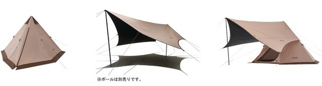 本シリーズは、落ち着いたブラウンのカラーリングが特長で、単体での使用はもちろん、組み合わせて使用することもできるテントとタープです。両アイテムとも収納バックが付属するため、持ち運びに便利です。